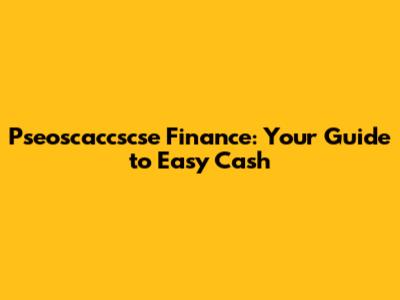 Easy Cash With Pseoscaccscse Finance