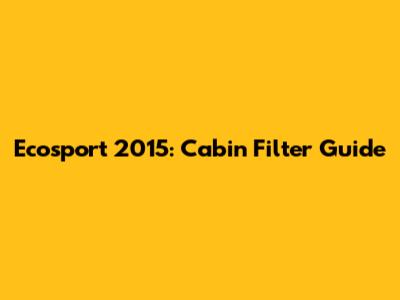 Ecosport 2015: Cabin Filter Guide