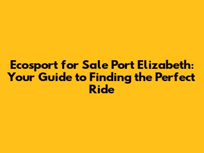 Ecosport For Sale: Find Yours In Port Elizabeth!