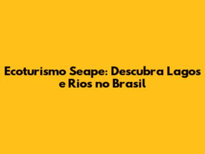 Ecoturismo Seape: Descubra Lagos E Rios No Brasil