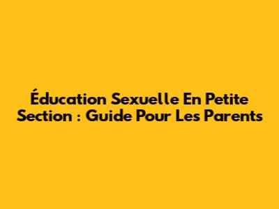 Éducation Sexuelle En Petite Section : Guide Pour Les Parents