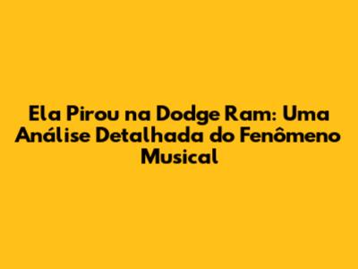 Ela Pirou Na Dodge Ram: Desvendando O Sucesso Musical