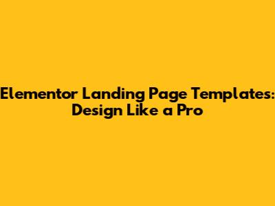 Elementor Landing Page Templates: Design Like A Pro