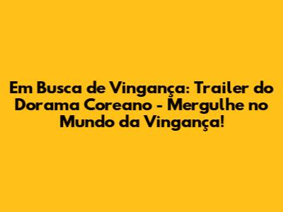 Olá, pessoal! Se preparem, porque hoje vamos mergulhar de cabeça no mundo eletrizante de "Em Busca de Vingança", um dorama coreano que promete prender você do início ao fim. Se você, assim como eu, adora um bom drama com reviravoltas, segredos obscuros e, claro, muita vingança, então pode ter certeza de que este dorama é para você! Neste artigo, vamos explorar tudo o que você precisa saber sobre o trailer, o enredo, os personagens, as expectativas e, é claro, onde e quando você poderá assistir a essa joia. Preparem a pipoca e vamos nessa!