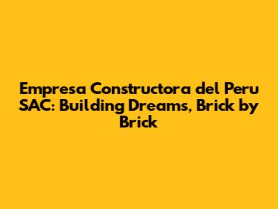 Unveiling Empresa Constructora del Peru SAC: A Brief History