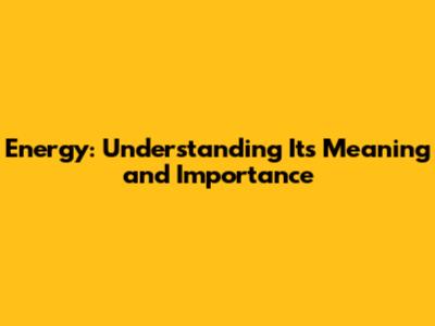 Energy: Understanding Its Meaning And Importance