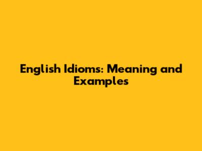 English Idioms: Meaning And Examples