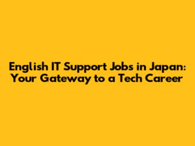 English IT Support Jobs In Japan