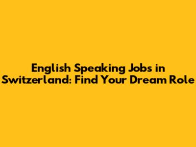 English Speaking Jobs In Switzerland: Find Your Dream Role