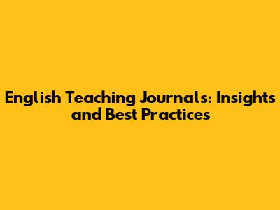 English Teaching Journals: Insights And Best Practices
