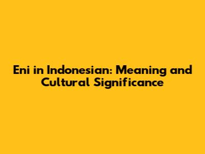 Eni In Indonesian: Meaning And Cultural Significance