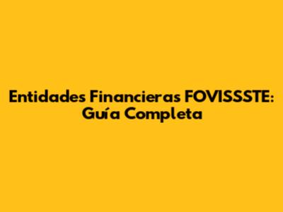 Entidades Financieras FOVISSSTE: Guía Completa