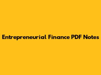 Entrepreneurial Finance PDF Notes: Your Quick Guide