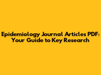 Epidemiology Articles PDF: Your Guide To Key Research
