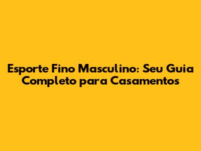 Esporte Fino Masculino: Guia Completo Para Casamentos
