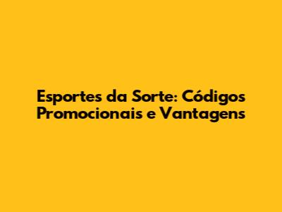 Esportes Da Sorte: Códigos Promocionais E Vantagens