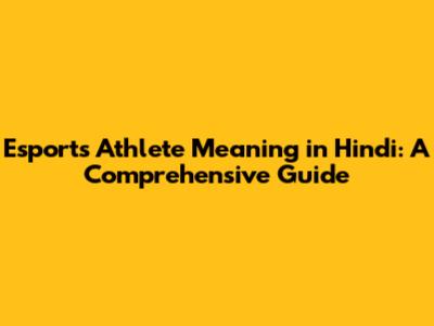 Esports Athlete Meaning In Hindi: A Comprehensive Guide