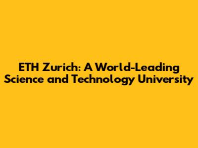 ETH Zurich: A World-Leading Science And Technology University