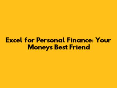 Excel For Personal Finance: Your Money's Best Friend