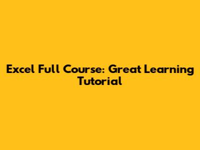 Excel Full Course: Great Learning Tutorial