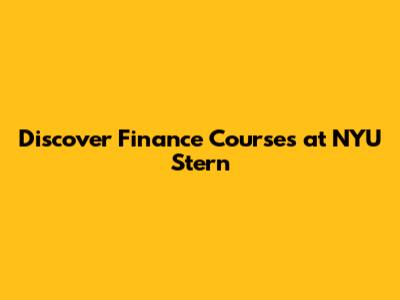 Explore Finance Courses At NYU Stern