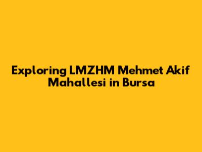 Hey guys! Ever wondered about the hidden gems of Bursa? Well, let's dive right into LMZHM Mehmet Akif Mahallesi! This neighborhood is a cool spot in Bursa, Turkey, and it's got a lot to offer. From its history to its vibe, we're gonna check out everything that makes this place special. So, buckle up, and let's start this adventure, I promise, it's gonna be a fun ride!