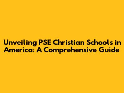 Unveiling PSE Christian Schools in America: A Comprehensive Guide