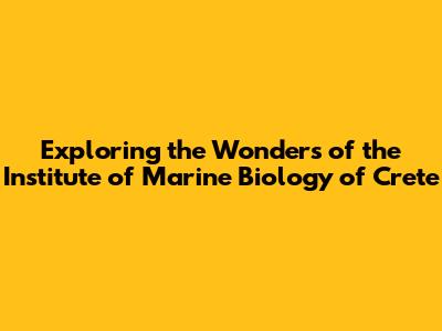 Exploring The Wonders Of The Institute Of Marine Biology Of Crete