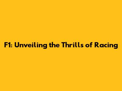 F1: Unveiling The Thrills Of Racing