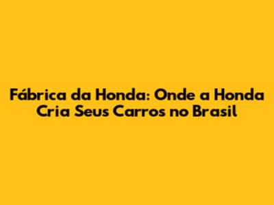 A fábrica da Honda no Brasil é um marco significativo na indústria automobilística do país. Se você, assim como muitos de nós, é fã dos carros da Honda e já se perguntou onde esses veículos são fabricados, este artigo é para você. Vamos mergulhar no universo da Honda no Brasil, explorando suas instalações, a produção e o impacto que a marca tem no mercado automotivo brasileiro. Prepare-se para uma viagem informativa e cheia de curiosidades sobre a fábrica da Honda e seus carros!