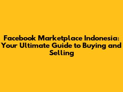 Facebook Marketplace Indonesia: Buy & Sell Guide