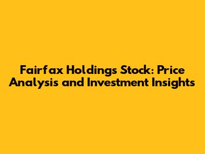 Fairfax Holdings Stock: Price Analysis And Investment Insights