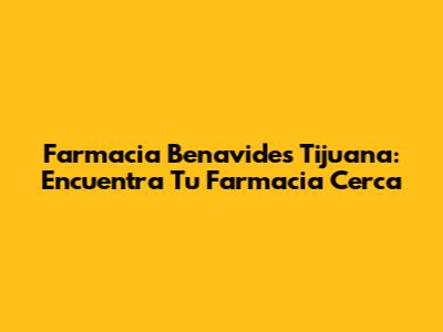Farmacia Benavides Tijuana: Encuentra Tu Farmacia Cerca