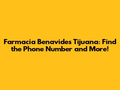 Farmacia Benavides Tijuana: Phone Number & Info