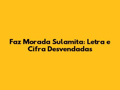 Faz Morada Sulamita: Letra E Cifra Desvendadas