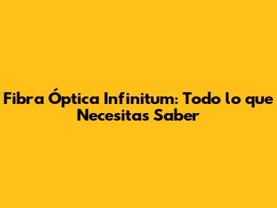 Fibra Óptica Infinitum: Todo Lo Que Necesitas Saber