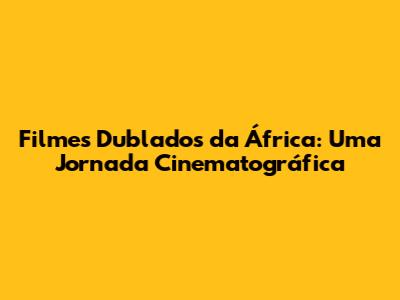 Filmes Dublados Da África: Uma Jornada Cinematográfica