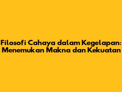 Filosofi Cahaya Dalam Kegelapan: Menemukan Makna Dan Kekuatan