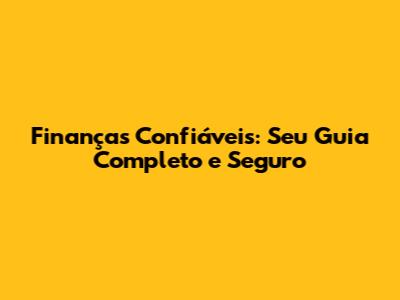 Finanças Confiáveis: Seu Guia Completo E Seguro