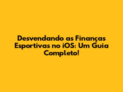Finanças Esportivas No IOS: O Guia Definitivo