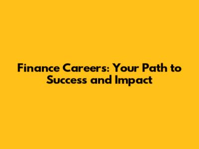 Finance Careers: Your Path To Success And Impact