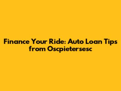 Finance Your Ride: Auto Loan Tips From Oscpietersesc