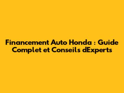 Financement Auto Honda : Guide Complet Et Conseils D'Experts