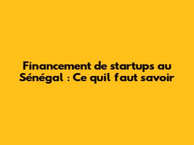 L'Avenir du Financement des Startups au Sénégal