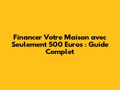 Financer Votre Maison Avec Seulement 500 Euros : Guide Complet