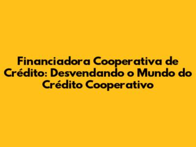 O Que É uma Financiadora Cooperativa de Crédito?