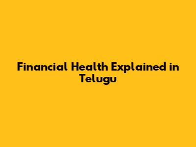 Financial Health Explained In Telugu