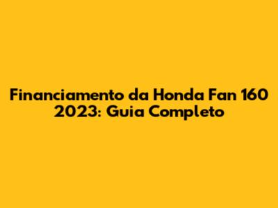 Financiamento Da Honda Fan 160 2023: Guia Completo