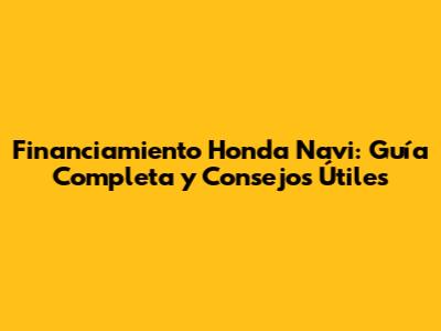 Financiamiento Honda Navi: Guía Completa Y Consejos Útiles
