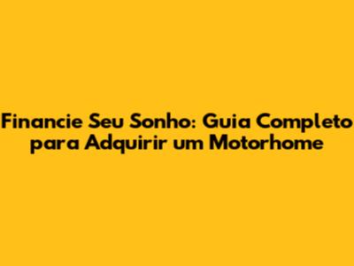 Financie Seu Sonho: Guia Completo Para Adquirir Um Motorhome